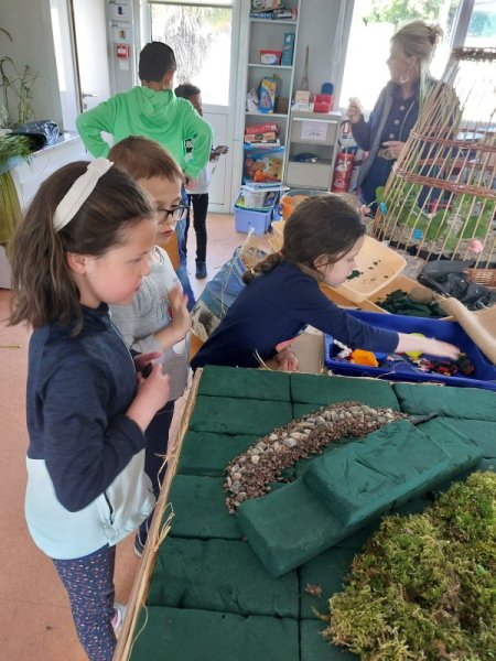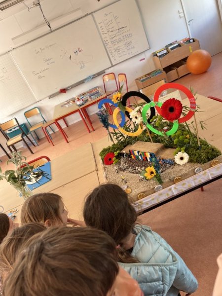 Cette semaine avec la classe de CP et la classe arc-en-ciel nous avons réalisé nos compositions florales sur le thème “jeux de fleurs” exposées aux Floralies : nous avons ramassé des feuillages, rempoté, imprimé des boutons d’or sur du tissu, disposé les jeux, étalé du sable, positionné les fleurs, le blé…