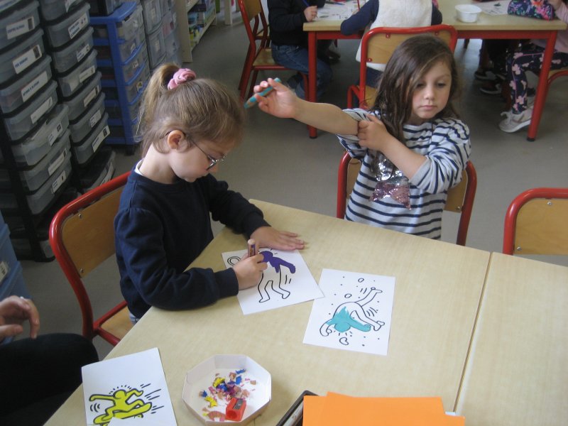 • Arts visuels : décorer une silhouette à la manière de l’artiste Keith Haring; réaliser le bonhomme du mois de mai : un bonhomme sportif