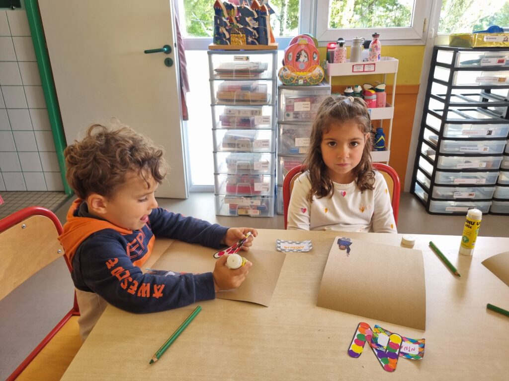 • En arts visuels, avec Lana, nous avons réalisé une production pour décorer nos porte-manteaux