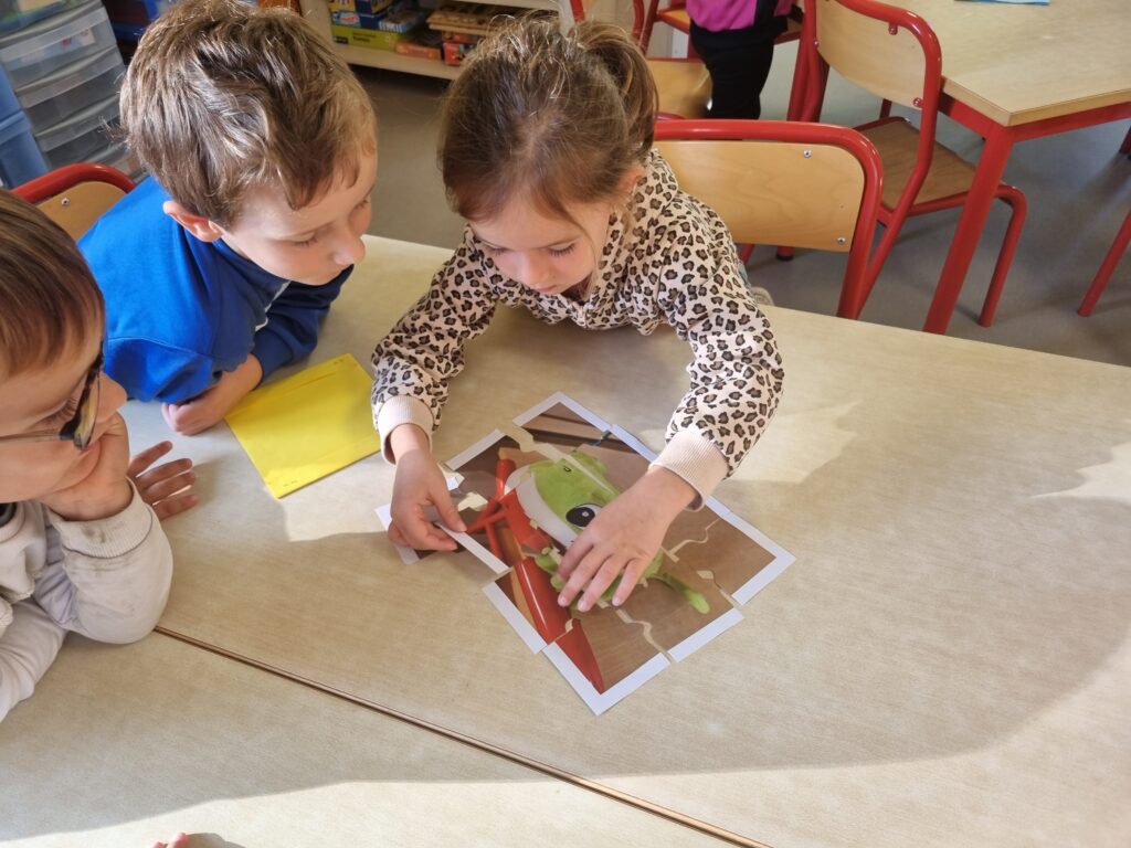 Jeudi, notre mascotte de classe, Siméon le caméléon a disparu. Il nous a laissé plusieurs énigmes pour qu’on le retrouve. Par petits groupes, nous les avons résolues ce qui nous a conduit à trouver un code à 4 chiffres, ainsi que le lieu de la cachette : les polydrons. Nous avons fini par le retrouver!