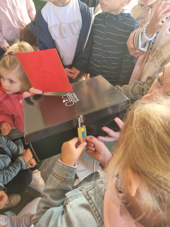 En ce début de semaine, nous nous sommes tous rassemblés sur la cour primaire, et nous avons rencontré Enigmus, un petit enquêteur avec son chien, qui va nous accompagner tout au long de l’année et nous amener à mener l’enquête!