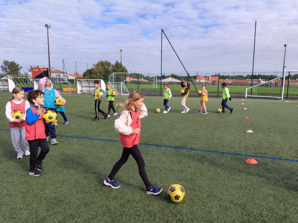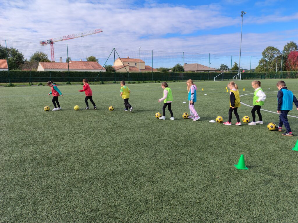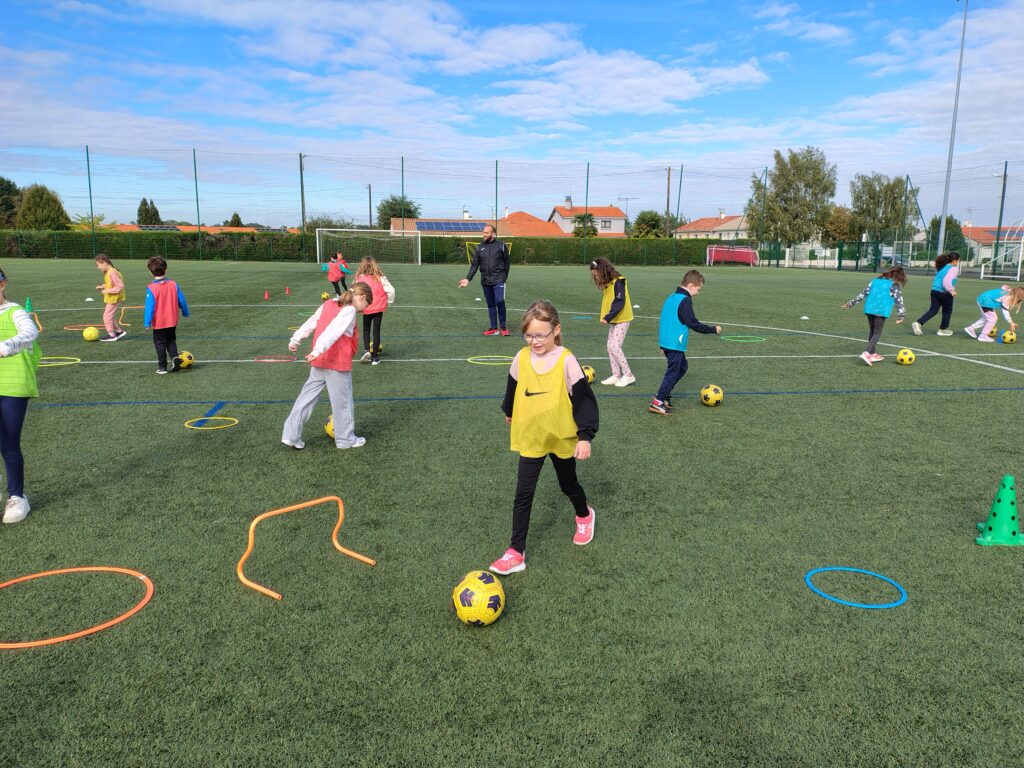 Le jeudi après-midi, pendant 6 semaines, les élèves de Ce2 vont faire du foot à l’école, encadré par les entraineurs du club de Mouilleron.