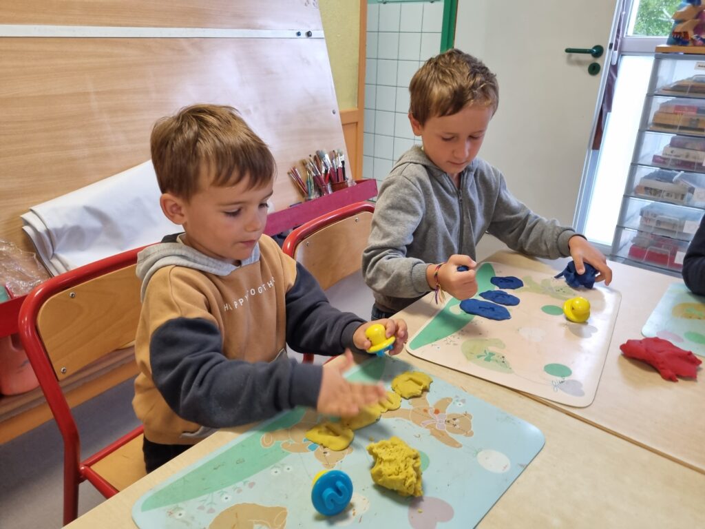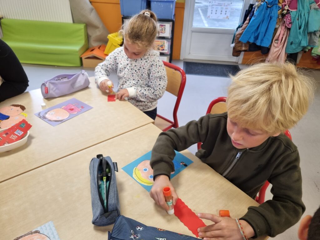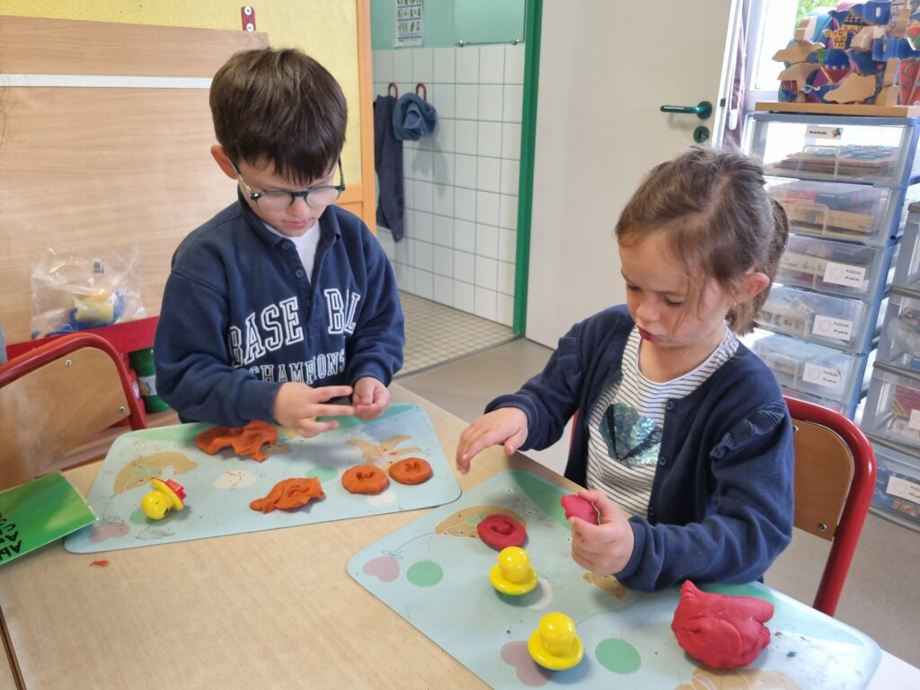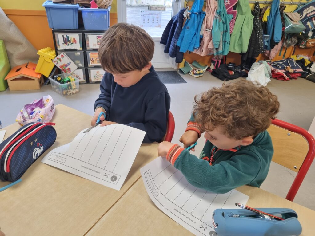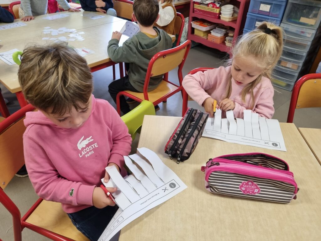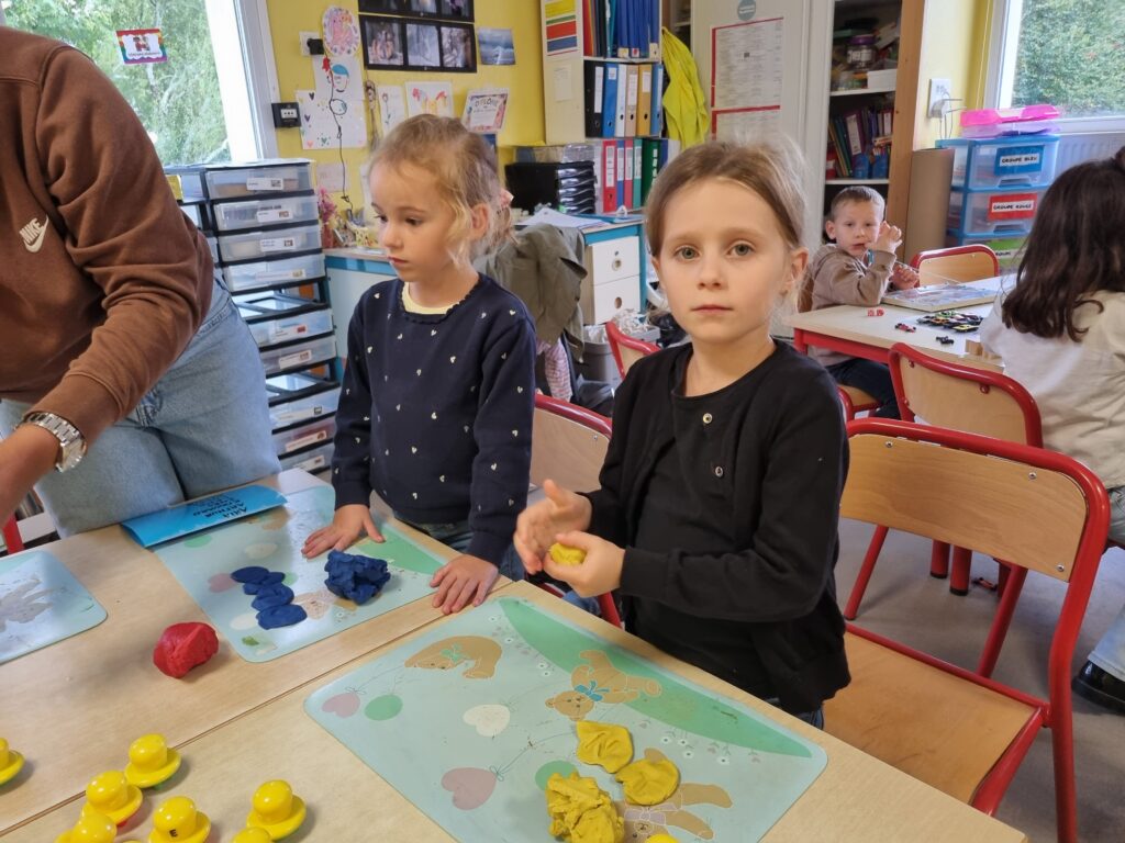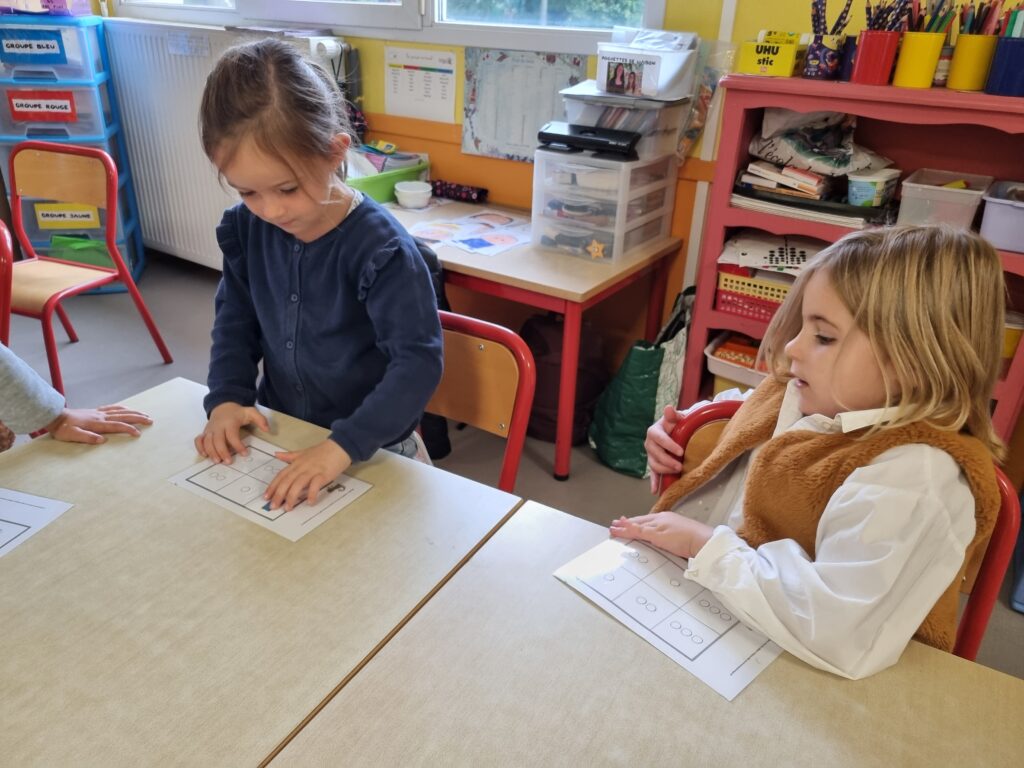 GS : semaine du 22 au 26 septembrePar Marie Duval / 28/09/2025 Avec Marie, nous avons joué au loto des syllabes. Avec Lana, nous avons terminé la mise en page de notre autoportrait à la manière d’Isabelle Kessedjian. Avec Leelou, nous avons écrit notre prénom en tamponnant les lettres dans la pâte à modeler. Nous avons également réalisé un exercice de découpage. En sport, nous avons effectué un jeu coopératif qui s’appelle “le jeu des briques”.
