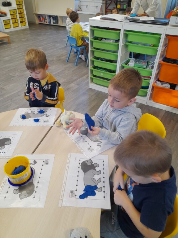 Nous préparons notre geste d’écriture en réalisant des colombins de pâte à modeler.