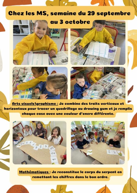 Chez les MS : semaines du 22 au 26 septembre et du 29 septembre au 3 octobre.Par Solange Majou / 07/10/2025