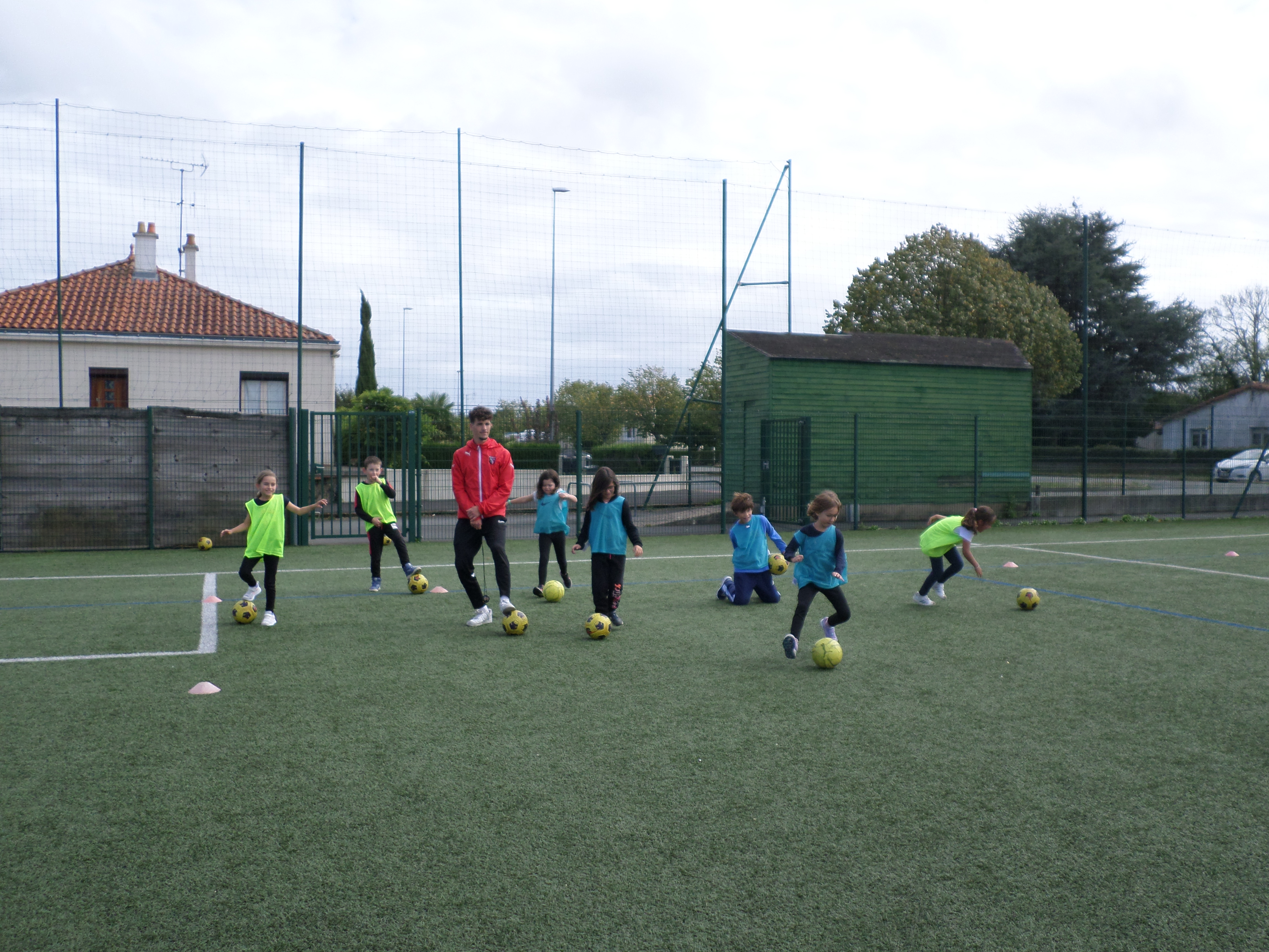 Cette période, les CE1-CE2 ont bénéficié de 6 séances de football avec des intervenants du club de Mouilleron le Captif.