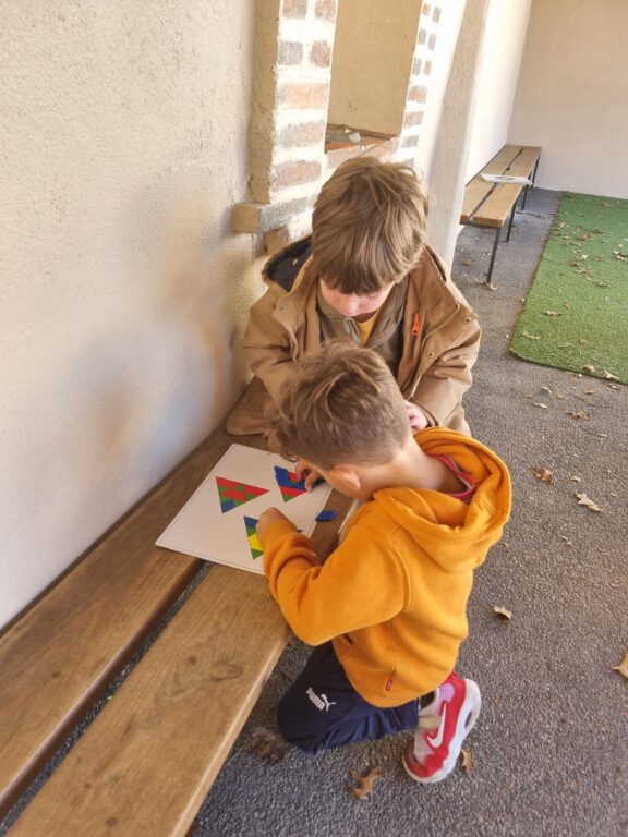 GS : semaine du 13 au 17 octobrePar Marie Duval / 20/10/2025 Cette semaine, nous avons suivi une notice et construit des modèles avec les Technicos. Nous avons réalisé le bonhomme du mois d’octobre : un bonhomme citrouille. Nous avons dénombré et réalisé un assemblage de formes.
