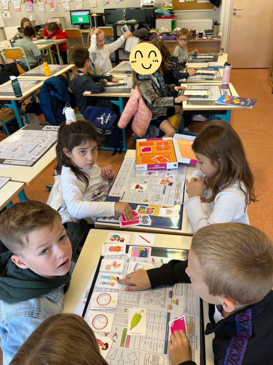 Cette période, les CE1 des deux classes se retrouvaient le mardi après-midi pour faire des ateliers de français (compréhension lecture…) et mathématiques (problèmes, calculs…). Ils faisaient ensuite une séance de sport avec les élèves de la classe Arc-en-ciel (jeux collectifs, petits jeux de coopération…). Voici quelques photos de ces temps de rencontre entre les trois classes.