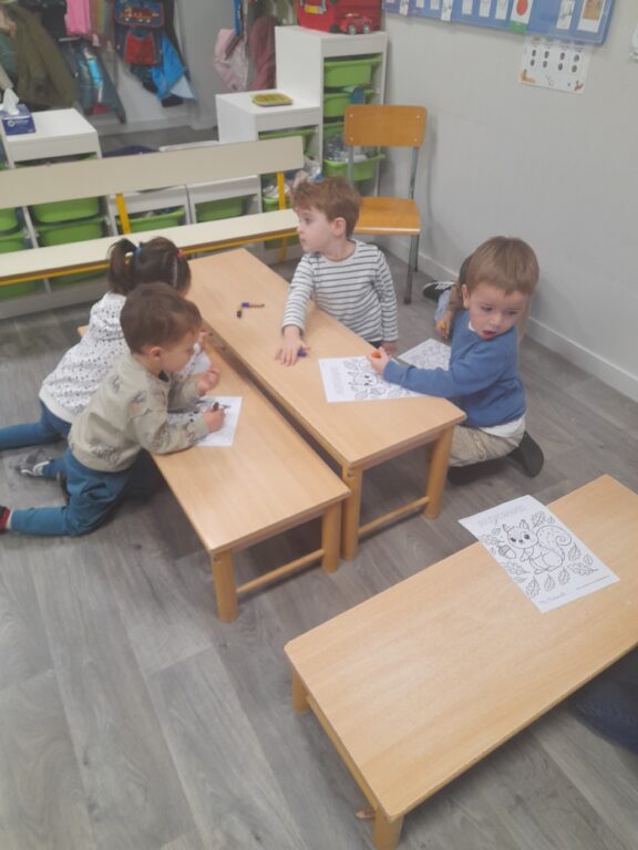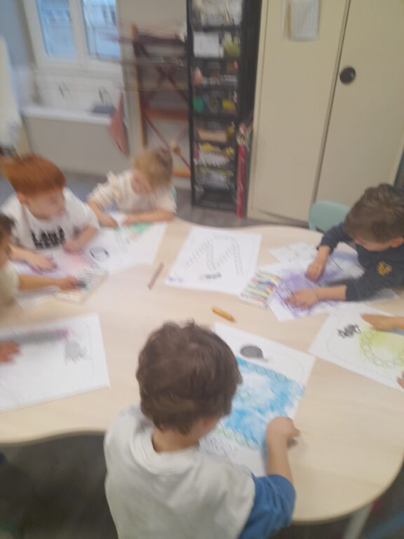 Avec Emilie, nous la colorions et la remplissons de gommettes.