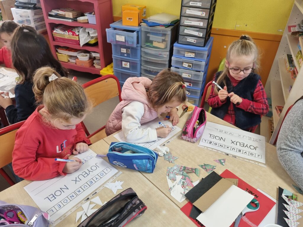En cette dernière semaine avant les vacances, nous avons terminé les travaux commencés. Avec Lana nous avons réalisé une carte de Noël. Dans le même temps, nous nous sommes entrainés à écrire Joyeux Noël Nous avons utilisé des emporte-pièce et modelé des formes à la pâte à modeler. Nous nous sommes entrainés à tracer le chiffre 3. La maman de Soa est venue jouer de la guitare et nous avons chanté des chants de Noël. Je vous souhaite à tous des joyeuses fêtes de fin d’année!