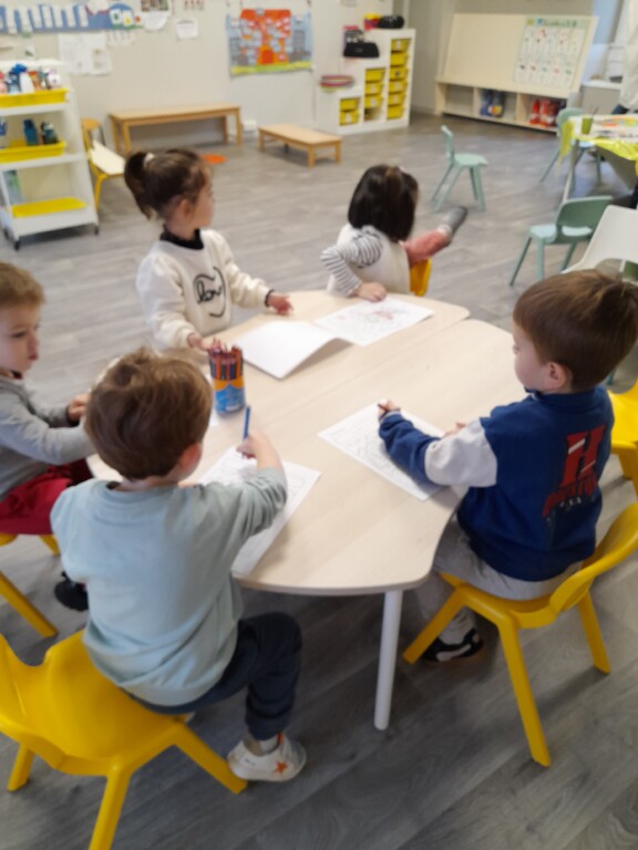 En TPS/PS : semaine du 9 au 13 Février 2026Par Caroline Nicolleau / 11/02/2026 LAvec Emilie, nous avons peint librement.Nous avons réalisé un poinçonnage d’Hiver : le bonnet.Avec Caroline, nous travaillons la reconnaissance des quantités et des chiffres jusqu’à 3.Nous apprenons à colorier sans dépasser. En ce moment, nous nous prenons de passion pour le découpage.