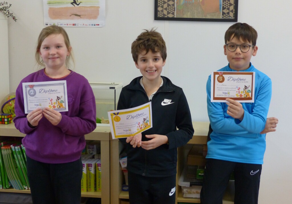 Ci-contre, les 3 gagnants de CM1.