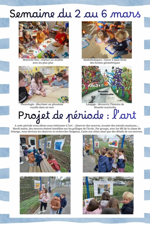 GS : semaine du 2 au 6 marsPar Marie Duval / 12/03/2026 Après deux semaines de vacances, nous étions ravis de nous retrouver. Nous avons accueilli dans notre classe une nouvelle élève. Bienvenue à toi Julie!Voici les photos des activités réalisées cette semaine :