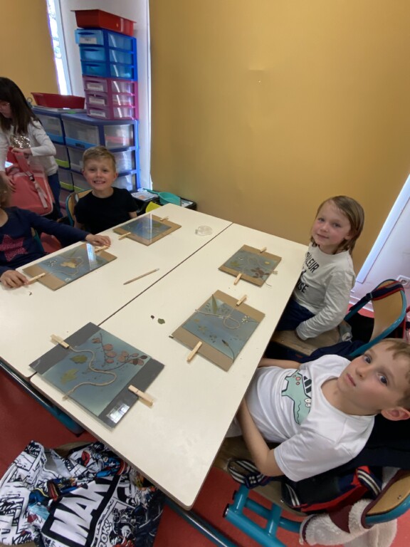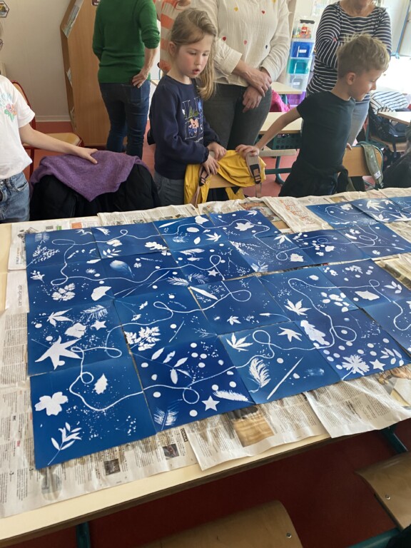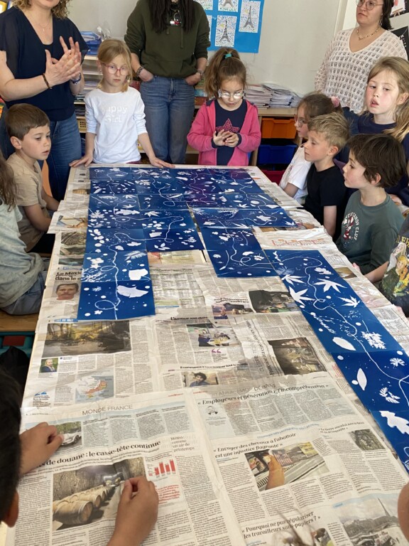 Vendredi Marie Coutand nous a initié à l’art du cyanotype.C’est une technique artistique qui demande beaucoup de précision. Nous avons réalisé chacun une oeuvre. Toutes nos productions seront assemblées pour réaliser une immense fresque collective.