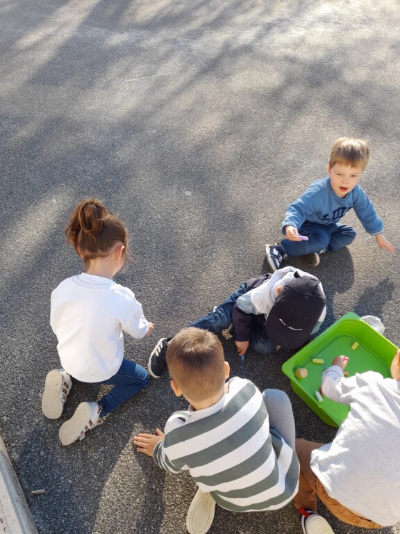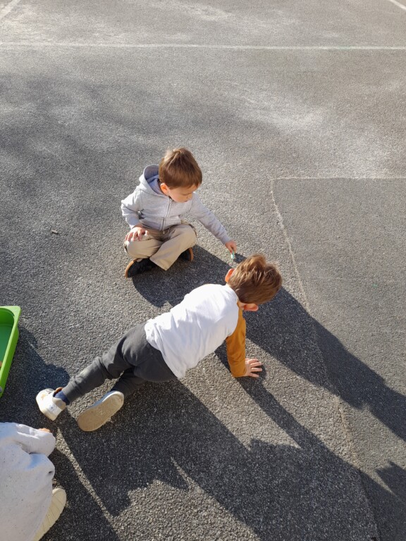 Nous dessinons à la craie sur la cour.
