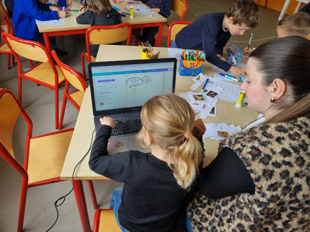 Après avoir découvert l’histoire de la grenouille à grande bouche, nous avons eu pour projet d’écrire la suite de l’histoire. Nous avons chacun écrit une phrase que nous avons recopiée à l’ordinateur.